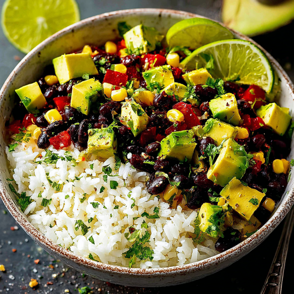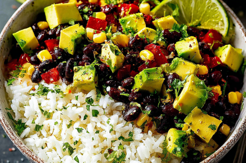 Avocado-Schwarzbohnen-Salat mit Reis genießen